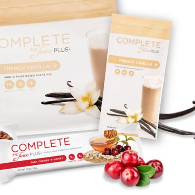 Complete Products Range - Complete Nutrition | Juice Plus+ Complete by Juice Plus+ shakes provide tasty, easy, healthful nutrition on-the-go to help fuel your day. From $ 38.00 /mo. Shop Now Complete by Juice Plus+ Bars A portable, plant-based snack to fuel your day. Add some balanced nutrition to your day with our deliciously chewy and satisfying Complete by Juice Plus+ bars.