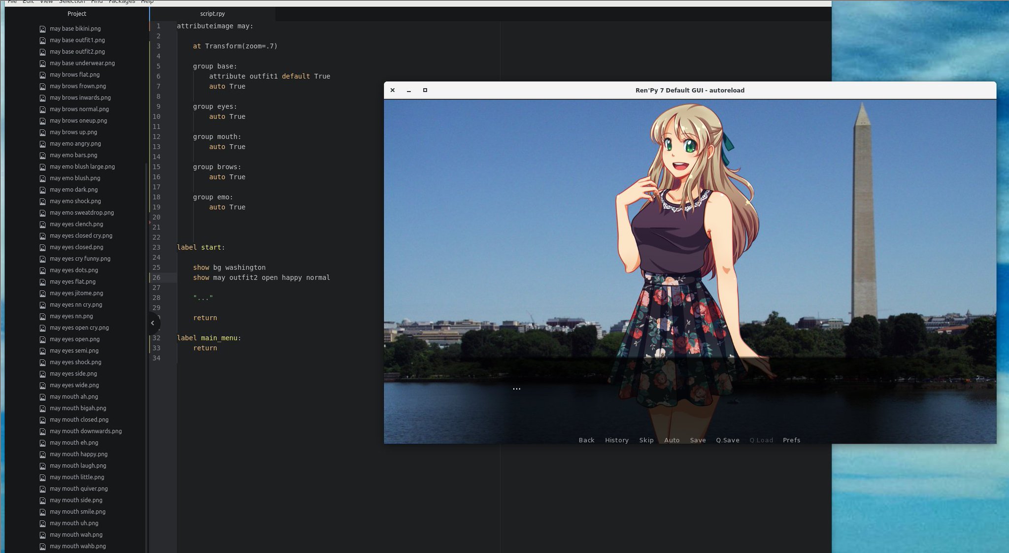 r/RenPy - How do I tell the game to return to the main menu if the ... So I have a command in the project I'm making that allows the player to choose their own name (povname). I want to do something clever, though, and make it so that if the player enters a certain word in the text field, or if said player doesn't enter anything at all, a message appears and they get sent back to the main menu. console commands : RenPy - reddit Sep 15, 2021 · Hi, everyone. I am new to RenPy and still learning about coding. I am trying to include a scenario in my story where the player gets the best ending in the end of my chapter if they score 7 or more points. But it keeps taking me to the wrong ending despite having less than 7 points?Please tell me how I can fix my error(s). Thank you so much! Scarlet Law by jypgames - Itch.io This game contains scenes and images that are not suitable for anyone under the age of 18. Also, stop by our DISCORD to see sneak peeks at upcoming scenes within the game! Plot: In the land of Scarlet, there is a law that's existed since its founding... Renpy Automatic Image Loading - VN Coder Renpy Automatic Image Loading Published by Maniwa on March 4, 2022 In renpy you have two options to use an image inside your game, you can either define it manually or let renpy load it. When renpy loads the image for you, it uses the filename to name it.