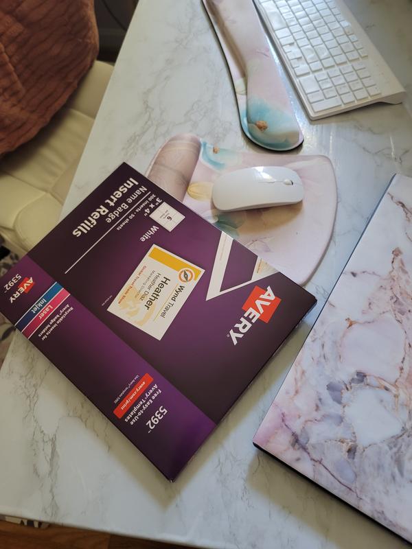 Avery Customizable Name Badge Inserts, 3" x 4", White, Packs of 300, 2 ... Quickly and easily print out clean, customized name tag inserts for events with this pack of 300 Avery 5392 cardstock name badge inserts. This pack of badge insert cards is compatible with Avery name badge holders 74541, 74459, 74520, 74540, 5384, 8780 and 8781. Whether you need DIY name badges for school events, business meetings, conventions ...