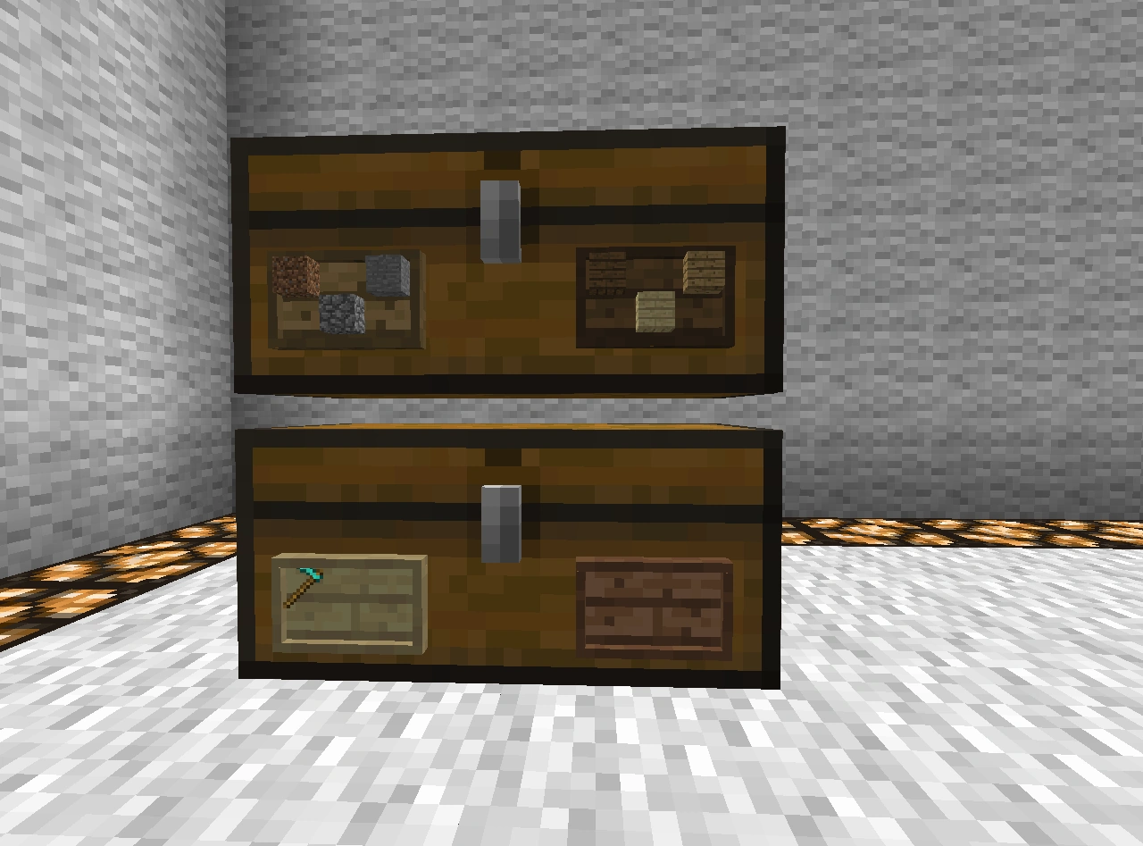 How to label chests in minecraft. How To Organize Chests In Minecraft? | Organyzedu You can also organize chests according to where they're in the creative inventory. You can use labels like decoration blocks, building blocks, key tools, Redstone, etc. Keep in mind that this doesn't work if you have a large supply of things. However, if this is the case, you can easily split each category between two separate chests. Tutorials/Organization - Minecraft Wiki - Fandom If you want single chests side-by-side without them combining into a large chest, then place them while sneaking to prevent them from joining. [ Java Edition only] If you have room, you may want to place signs or item frames next to, above, or on the chests to label them and make categorizing easier. How To Label A Chest In Minecraft - YouTube Hey guys in todays video I will be showing you guys how to label a chest un Minecraft! Please like subscribe and comment How do you label chests in Minecraft? - Quora There are two ways. The first way is to simply crouch and right-click to place a sign on the chest and the other way is to crouch-place an item frame ...