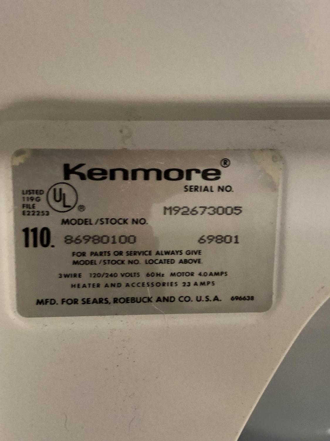 Kenmore label and tag