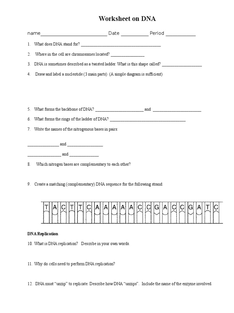 Dna and replication worksheet answers label the diagram