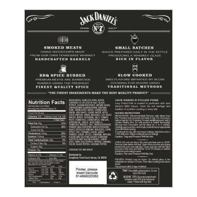 Jack daniels nutrition label