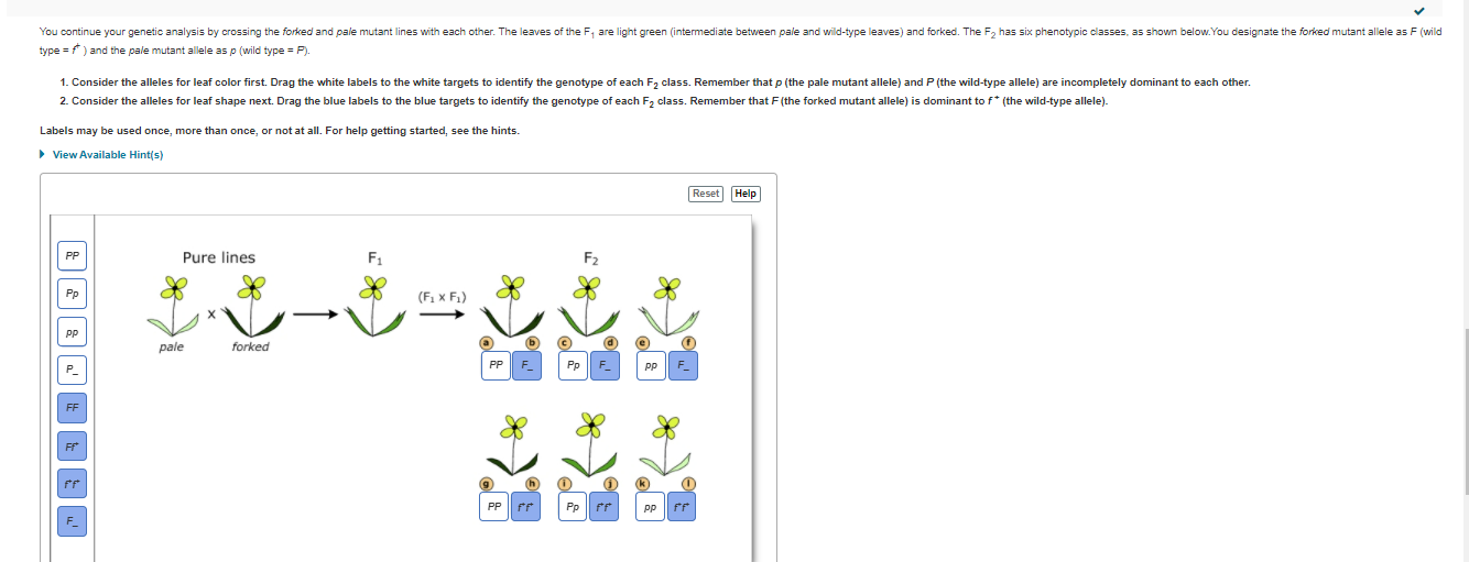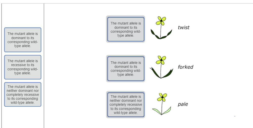 Mastering Biology Chp. 11 HW Flashcards | Quizlet VerkkoPART B - Crossing the forked and pale mutants You continue your genetic analysis by crossing the forked and pale mutant lines with each other. The leaves of the F1 are light green (intermediate between pale and wild-type leaves) and forked. The F2 has six phenotypic classes, as shown below.